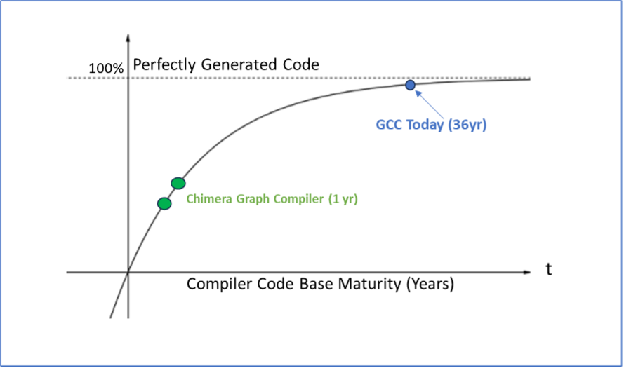 Quadric’s Chimera Graph Compiler (CGC) is based in-part on TVM and has been heavily extended to optimize for the Chimera architecture. CGC is less than a full 1 year old since Beta deliveries to Quadric customers began in late 2022. CGC is therefore very, very early in the compiler maturity curve, as suggested by Figure B.