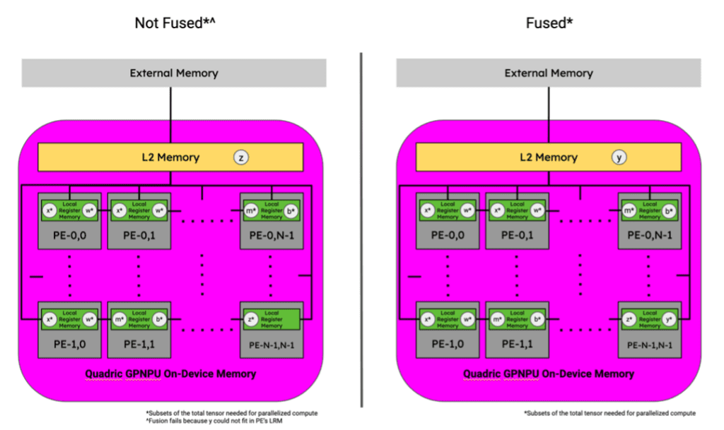 For these reasons, GPNPUs strike a balance between thoughtfully designed hardware for AI compute with the programmability and flexibility of a general-parallel compute platform like a GPU. GPNPUs satisfy the general computeand the memory organization requirements for operator fusion and are only limited occasionally by the memory availability requirement.