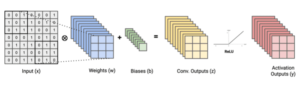 Figure 3. Tensors used in a 3x3 Conv., Bias Add, and ReLU activation function sequence of graph operators. Image by Author.