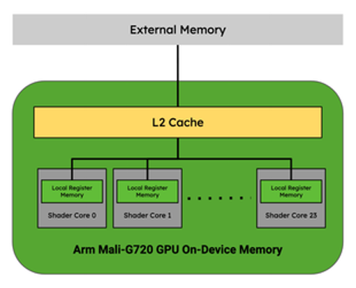 Figure 5. Arm Mali-G720 GPU Memory Hierarchy. Adapted from a diagram in this blog post